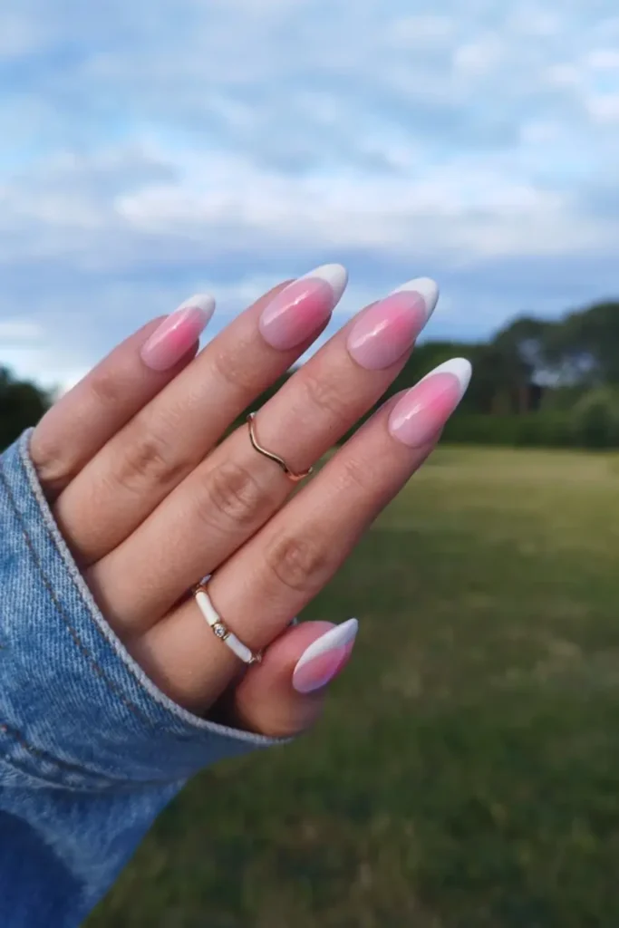 - Use a sponge to dab a gradient color (pink, blue, or peach) on the tips.