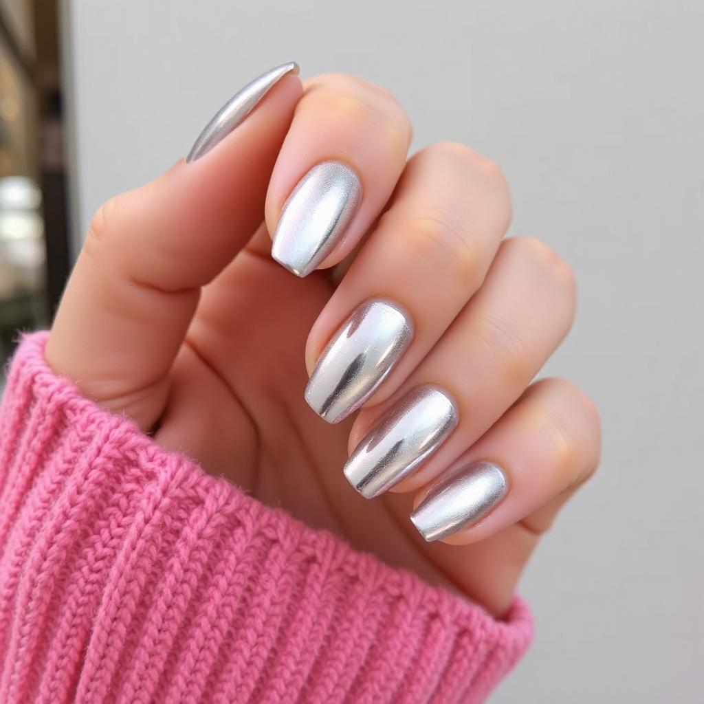 A light chrome glaze makes short nails glow in 2025 without being flashy.