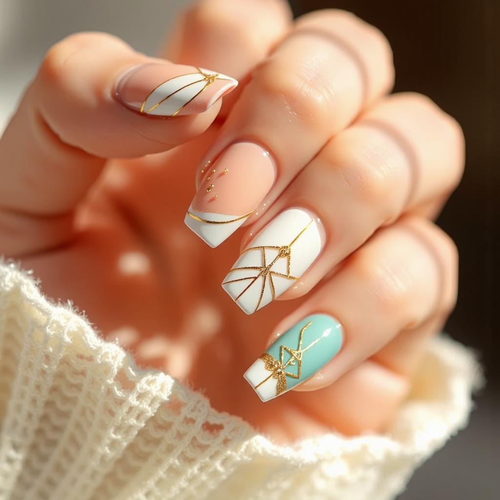 Leave thin unpainted lines on a neutral base for a chic geometric style.